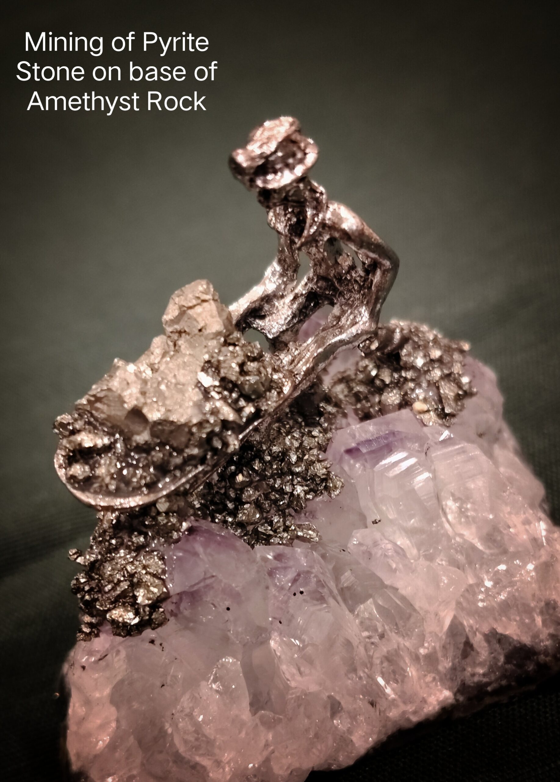 Miner Statue on Pyrite with Amethyst Stone